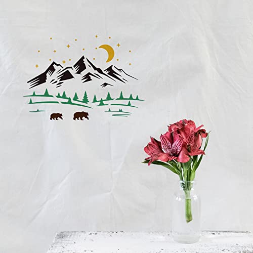 FINGERINSPIRE Momma Bear Cub Snowy Mountain - Stencil per pittura su legno, pavimento, piastrelle, parete e tessuto, 29,7 x 21 cm