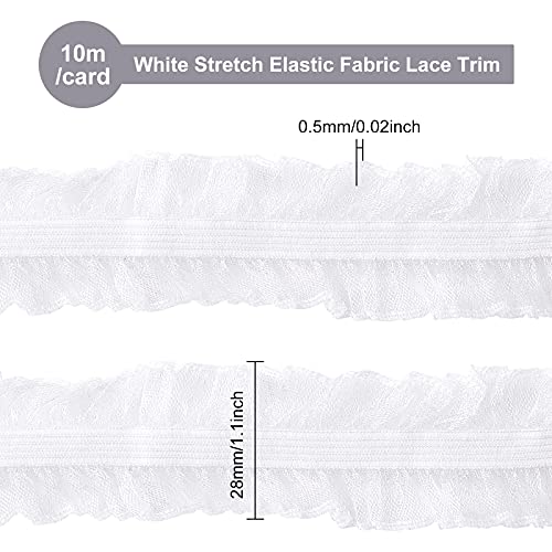 FINGERINSPIRE Nastro di pizzo elasticizzato doppio volant, larghezza 28 mm, per cucito, decorazioni di abiti e confezioni regalo, lunghezza 11 Yards, colore: bianco