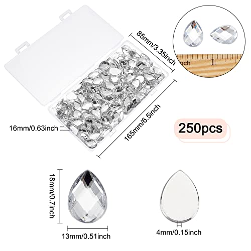 FINGERINSPIRE 250 Pezzi 18x13mm Acrilico Strass Gemme con Contenitore Acrilico Trasparente Gioielli Abbellimenti Cristalli Retro Piatto Gioielli Acrilici
