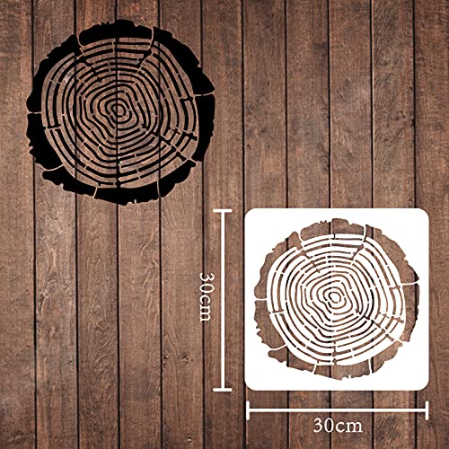 FINGERINSPIRE - Stencil decorativi, 30 x 30 cm, stencil quadrati in plastica, stencil riutilizzabili per dipingere su legno, pavimenti, pareti e tessuti, motivo: tronco d'albero con anelli
