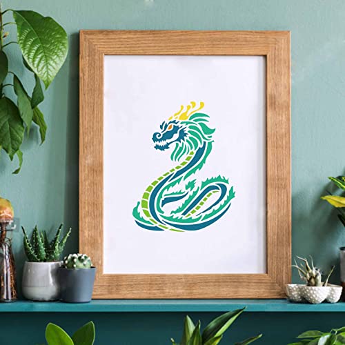 FINGERINSPIRE Set di 12 stencil a tema “drago”, stencil per pittura e disegno, in plastica, set di modelli con draghi volanti, per pittura su legno, pavimento, parete e piastrelle
