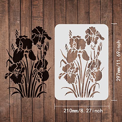 FINGERINSPIRE Iris Stencil 29,7 x 21 cm Fiori in plastica Disegno Stencil Fiore Floreale Stencil Murali Stencil Stencil Riutilizzabili per Pittura su Legno, Pavimento, Parete e Piastrelle