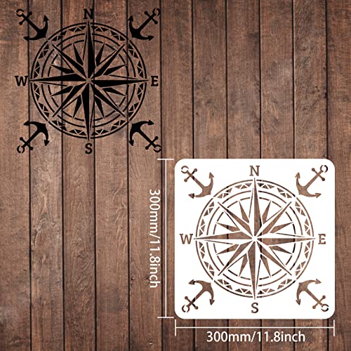 FINGERINSPIRE Stencil a forma di bussola, 30 x 30 cm, in plastica, per disegno, pittura, bussola, ancora, stencil riutilizzabili per dipingere su legno, pavimenti, pareti e piastrelle