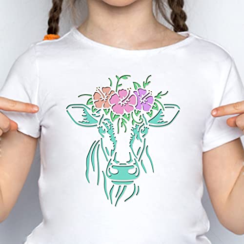 FINGERINSPIRE Stencil a forma di mucca, 29,7 x 21 cm, in plastica, motivo floreale, mucca, disegno, pittura, stencil riutilizzabili per dipingere su legno, pavimenti, pareti e piastrelle
