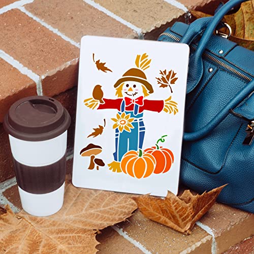 Stencil per spaventapasserieri: gli stencil in plastica sono stampati con spaventapasseri, foglie d'acero, zucche, uccelli e funghi, con motivi chiari e vivaci, adatti a tutti i tipi di creazioni di pittura. La dimensione è di circa 29,7 x 21 cm.
