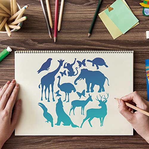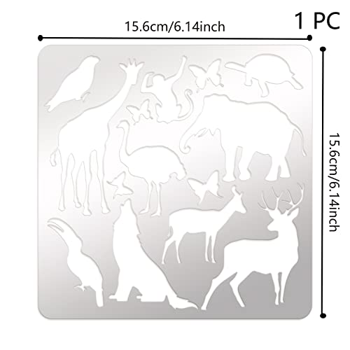 FINGERINSPIRE Stencil in metallo con animali da 15,6 cm, quadrato, in metallo, con motivo animali della foresta, in acciaio inox, lupo, elefante, giraffa, alci, scimmia, stencil per incisione