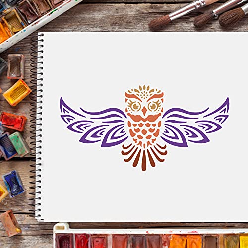 FINGERINSPIRE Stencil per Gufo Modello per Decorazione da Parete 30x20cm Stencil per Gufo Grande in plastica Rettangolo Stencil riutilizzabili per dipingere su pareti in Legno