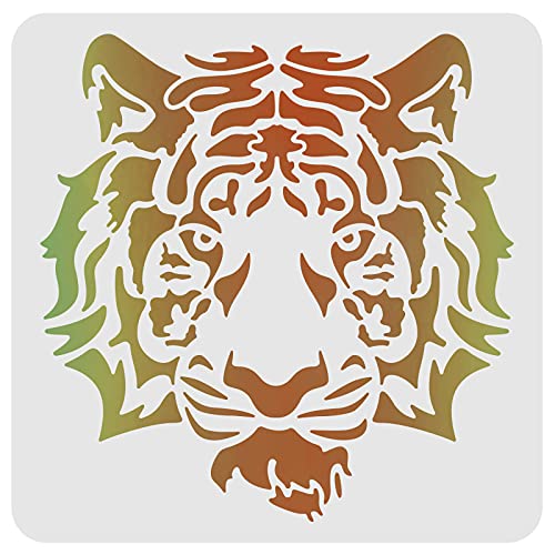 FINGERINSPIRE Tigre Stencil Stencil Modello Tigre 30x30cm Plastica Testa di Tigre Disegno Stencil Quadrato Testa di Tigre Stencil Riutilizzabili per Dipingere su Legno, Pavimento, Parete e Tessuto