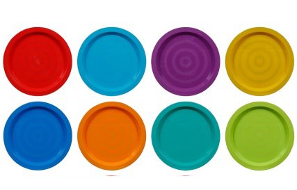 Fingey Stoviglie in plastica colorata, sicure e utilizzabili in microonde, confezione da 8 pezzi, plastica, Plates