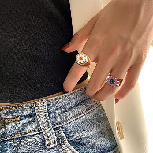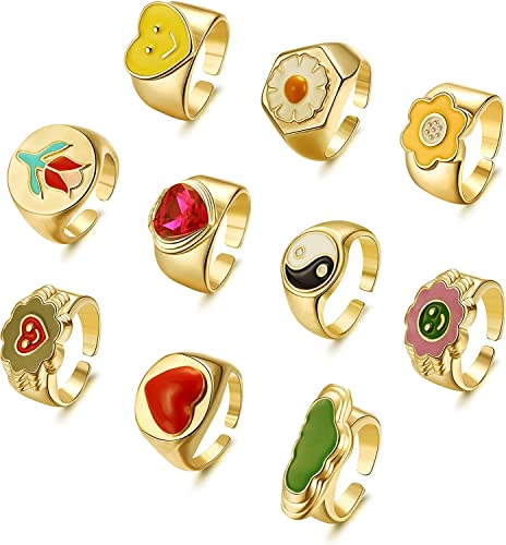 Finrezio 10PCS Y2K Grossi Anelli Colorati per Donna Yin Yang Daisy Cute Signet Open Stacking Rings Anelli Estetici Y2K Gold Statement Band Ring Set