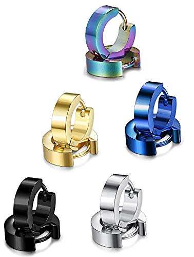【 SET DI ORECCHINI CONVENIENTI 】 10 paia di orecchini a set, 5 paia di orecchini a cerchio huggie (nero, argento, oro, blu, arcobaleno), orecchini a 5 paia (nero, argento, oro, blu, arcobaleno ).