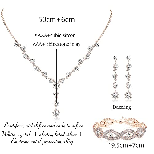 GIOIELLI DA MATRIMONIO Orecchini + Collana + Bracciale, 3 tipi di gioielli da matrimonio, intarsiati con strass e cristalli, lucidi e scintillanti.