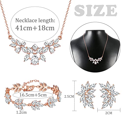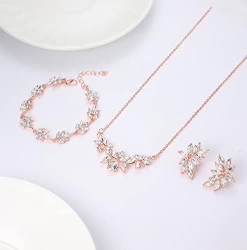 Finrezio Set di Gioielli da Sposa per Donna, Sposa, Damigelle d'Onore, Collana di Strass Vintage, Orecchini, Braccialetto, Costume da Ballo, Set di Gioielli in Oro Rosa di Cristallo