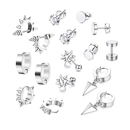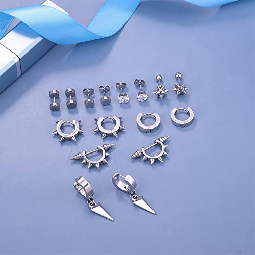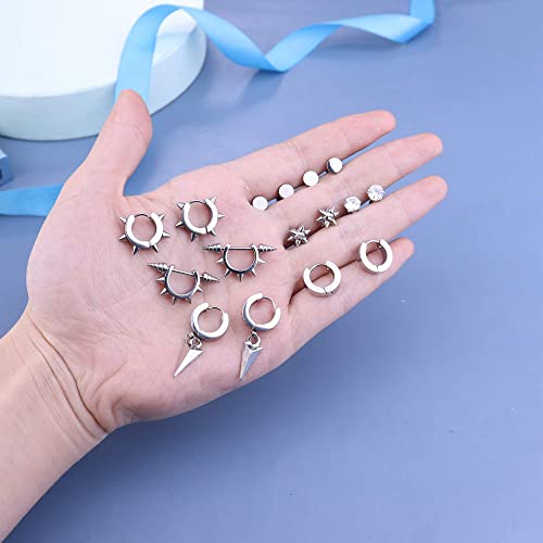 Finrezio 8 Paia Di Orecchini a Bottone Punk In Acciaio Inossidabile Per Donna Uomo Cz Orecchini Huggie a Triangolo In Argento Ciondola Piccoli Orecchini a Cerchio