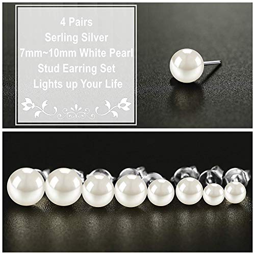 Finrezio 4 Paia Orecchini A Bottone In Argento Sterling Con Perla D'acqua Dolce Per Donna, Orecchino Ipoallergenico 7-10MM