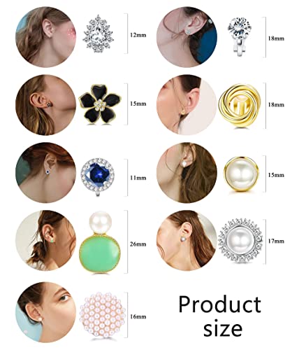 Finrezio 9 Paia Orecchini a Clip da Donna CZ Perle D'acqua Dolce Nodo di Torsione Non Forato Orecchini a Clip Set Orecchini a Clip di Fiori da Donna