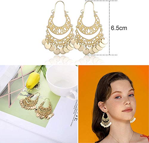Orecchini pendenti per donna: un ordine include 4 paia di orecchini pendenti color oro, 1 paio di orecchini pendenti a forma di lampadario bohémien, 1 paio di orecchini a gancio a disco a triplo cerchio, 1 paio di orecchini a gancio a goccia a doppio cerchio con pendenti in filigrana, 1 paio di orecchini a cerchio a goccia, Orecchini alla moda carini per donne e ragazze
