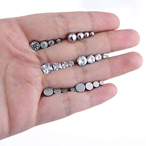 Finrezio 24 Paia Orecchini a Sfera in Acciaio Inossidabile con Zirconi Rotondi per Uomo Donna Orecchini Piercing Argento