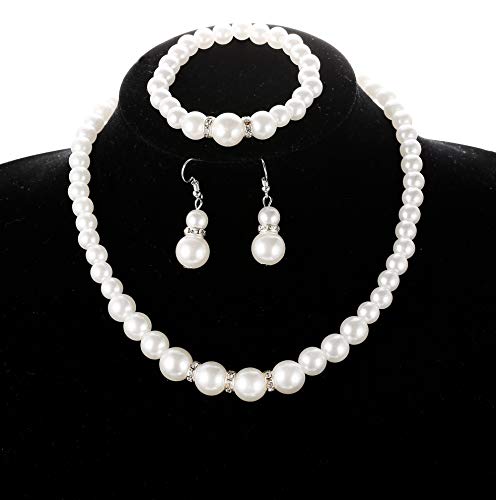 Finrezio Parure di Collana Orecchini Braccialetto in Perla Finta Gioielli Set Regalo per Donna Ragazza San Valentino Natale Compleanno Festa