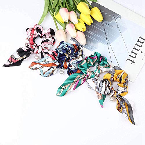 Finrezio 12 Pezzi Bowknot di Raso di Seta Scrunchies Capelli Elastici Fascia per Capelli Sciarpa Perlata