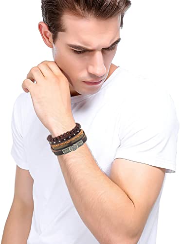 [ Cool Braeclets Set]: Con il nostro braccialetto in pelle marrone e il braccialetto in pelle nera, puoi indossarlo da solo o in combinazione. Abiti in stile vintage per donna e uomo, essendo anche un ottimo regalo per i tuoi amici, le famiglie per condividere braccialetti in pelle insieme.