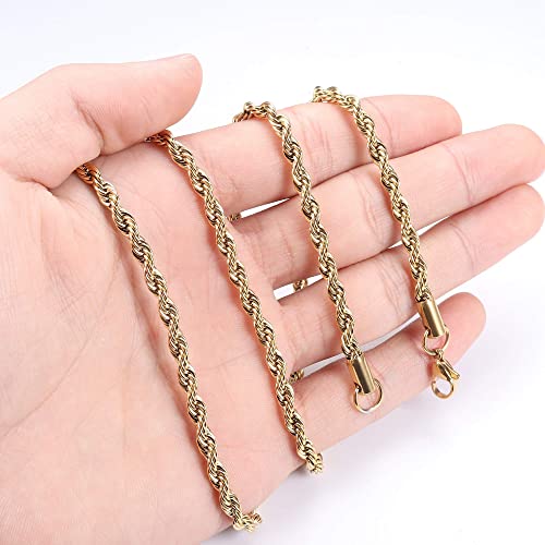 Finrezio 3 Pezzi 4mm Catena in Acciaio Inossidabile Placcato Oro per Uomo Donna Figaro Catena a Maglie Intrecciate Collana a Catena barbazzale Set 18-30 Pollici