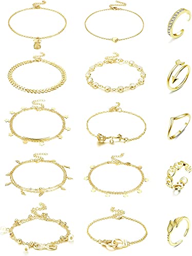 ♥ CAVIGLIERE e ANELLI DEI PIEDI♥ Riceverai 10 pezzi di cavigliere regolabili e 10 pezzi di anelli aperti. Che si tratti di una vacanza o di un abbigliamento quotidiano, la cavigliera è un accessorio popolare con donne e ragazze adolescenti. Design elegante e affascinante, semplice ma non semplice.