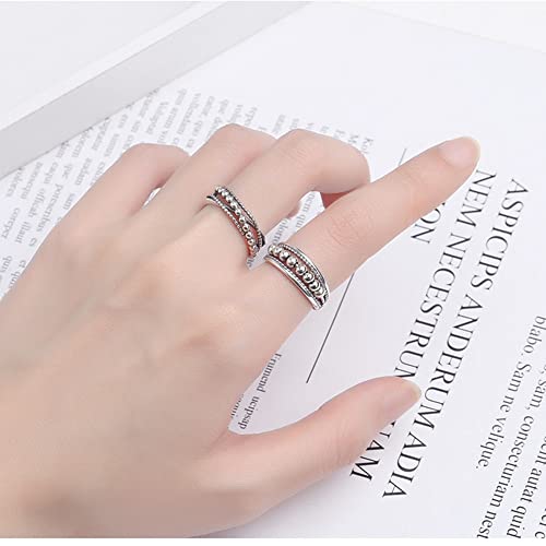 Finrezio 925 Sterling Silver Ansia Anello per Donna Uomo Spinner Fidget Ring per Ansia Alleviare Lo Stress Regolabile Impilabile Anelli Fidget Jewelry