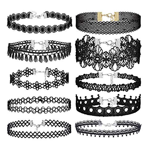 Finrezio Tattoo Choker Collana Girocollo Velluto Pizzo per Donna Ragazza Choker Elasticizzato Gotica 40 Pezzi