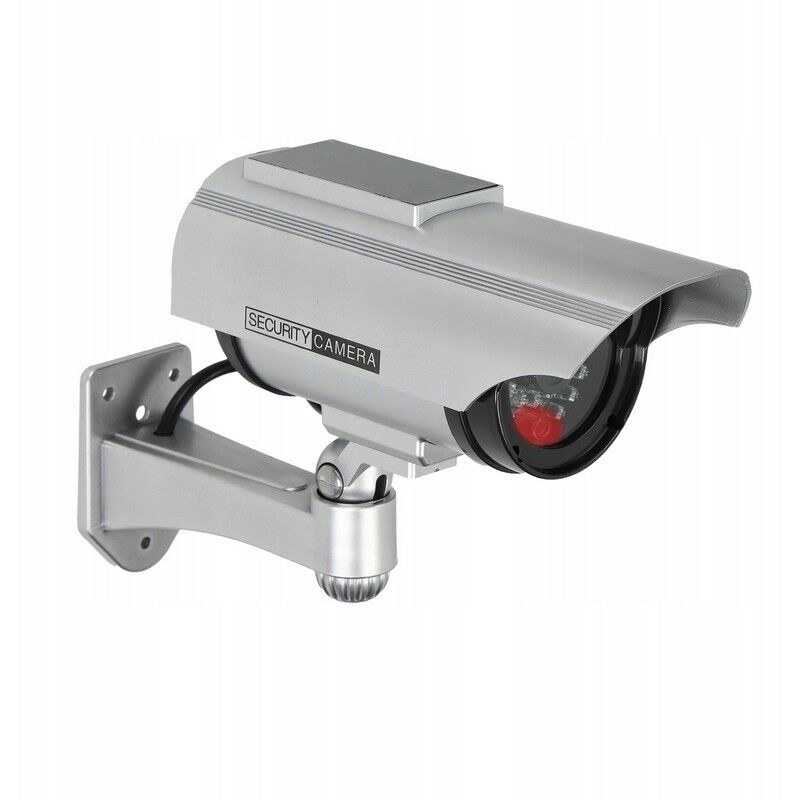 SPECIFICHE: Dimensioni del tubo: Lunghezza: 17,8 cm Diametro: 7,0 cm Dimensioni della base di montaggio: Larghezza: 8,0 cm Altezza: 8,0 cm Profondità: 12,4 cm senza sensore di movimento, luce notturna o batteria Telecamera di sicurezza fittizia Un dispositivo Caratterizzato dall'aspetto realistico di una telecamera di sicurezza con un LED lampeggiante alimentato da un pannello solare, dà l'impressione di un manichino di sorveglianza costante progettato per installazione interna ed esterna.**