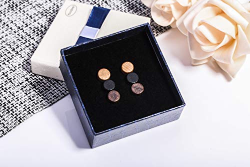 Perno orecchino: 1,2 mm, in acciaio inox ipoallergenico. diametro del disco in legno: 8 mm.