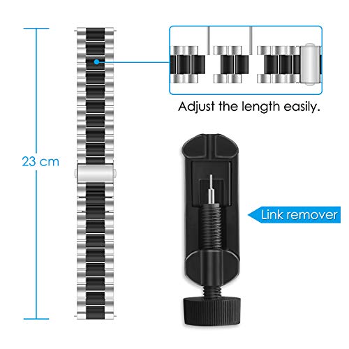 FINTIE Cinturino Compatibile con Huawei Watch GT/GT 2 / GT Active/GT Elegant smartwatch - Cinturini di ricambio in Acciaio Inossidabile Banda con Fibbia di Metallo, Nero/Argento