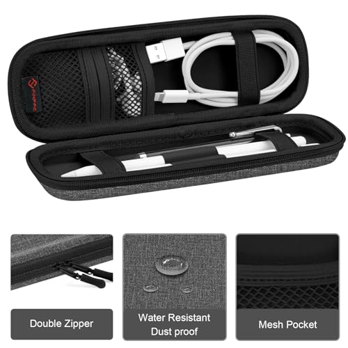 Fintie Custodia per Apple Pencil (1a e 2a generazione), custodia protettiva in pelle PU, compatibile con accessori per penne Apple, cavo USB, auricolari, Samsung Stylus, grigio
