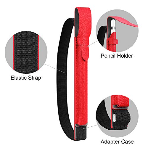 FINTIE Custodia Compatibile con Apple Pencil (1a And 2a Gen) - Slim Elastico Pencil Case con USB Tasca Adattatore Compatibile con iPad 10.2, iPad Air 4, iPad PRO 11/12.9 Custodia, Rosso