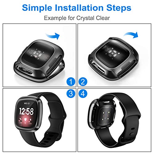FINTIE Custodia Compatible con Fitbit Sense/Versa 3 - [3 Pezzi] Ultra Sottile Full-Around Frame TPU Custodia Protettiva Bumper Case, Nero,Trasparente,Oro Rosa