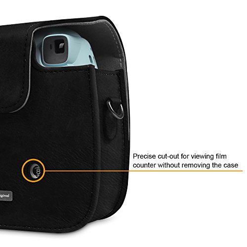 FINTIE Custodia per Fujifilm Instax Mini 9 / Mini 8 / Mini 8+ - Borsa Cover in Similpelle per Fujifilm Instax Mini 8 8s / Mini 9 Fotocamera Istantanea, Nero