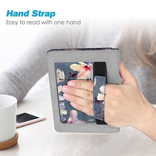 FINTIE Custodia per 6" Kindle Paperwhite (10ª generazione 2018 & All Generazione 2012-2017) - Premium PU Stand Cover Protettiva Card Slot e Hand Strap con Funzione Auto Sveglia/Sonno, Hibiscus