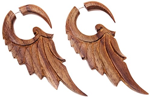Made In Zen Finto dilatatore per orecchie, Piercing, in legno, paio di orecchini, da uomo, donna, unisex, in legno, articolo etnico
