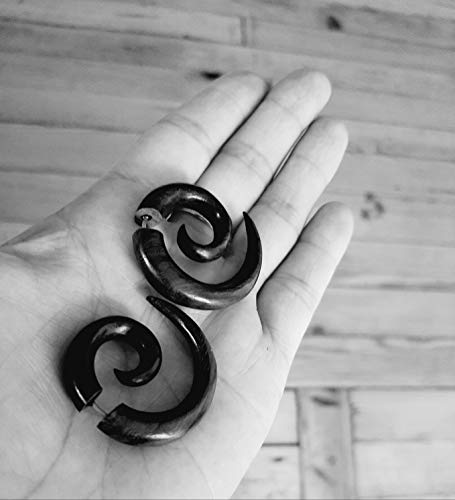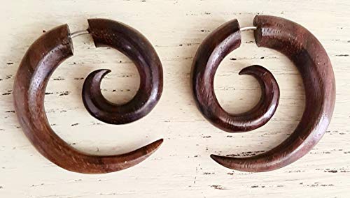 Finto dilatatore orecchini in legno, coppia marrone, uomo donna unisex etnico gauge Expander Wood Fake Spirale