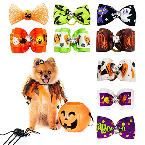 BIPY 20 fiocchi per capelli per animali domestici, per Halloween, con elastici in gomma, per cani di piccola taglia, gatto, cucciolo, 10 paia di fasce per capelli Topnod, colori assortiti