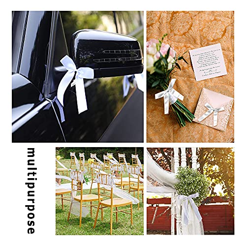 Fiocchi per Auto Matrimonio, XiXiRan 100 Pezzi Fiocchi Bianchi Matrimonio, Nastro Raso Bianco, Fiocco Auto Matrimonio, per L'Uso Auto Addobbi, Bomboniere, Chiesa, Casa, Laurea, Sedie, Sposa