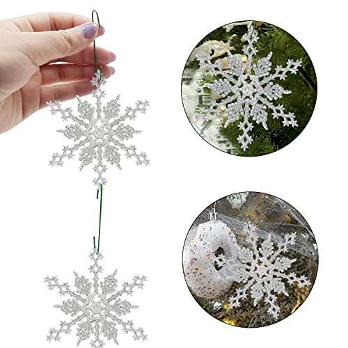 Fiocchi di Neve Natale Decorazione, 36 Pezzi Fiocchi di Neve con Glitter Addobbi per Albero di Natale, Addobbi Albero di Natale e Ghirlande (Argento)