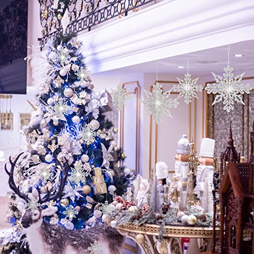 Fiocchi di neve glitterati: ogni ciondolo fiocco di neve è molto brillante e molto bello alla luce, il che rende il tuo albero di Natale ancora più abbagliante sotto la luce.