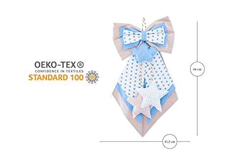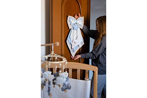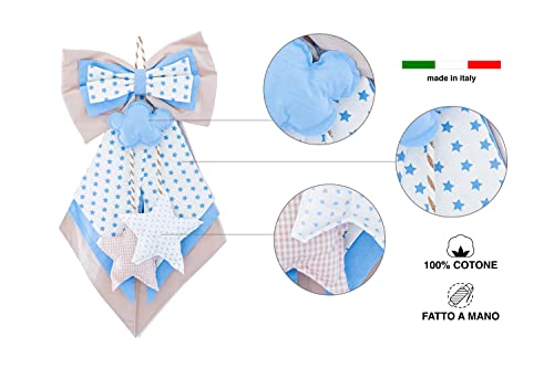 Fiocco nascita bimbo da esterno interno, 100% cotone italiano, realizzato artigianalmente, Coccarda nascita ecologica Certificazione OEKO TEX, Azzurro