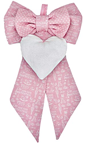 Fiocco Nascita Grande Bimba Bimbo Handmade Personalizzato Cuore Tela Aida da Ricamare Punto Croce con Nome Rosa Azzurro Gemelli Esterno Ospedale Fuoriporta Fai da Te Coccarda Originale Fatto A Mano