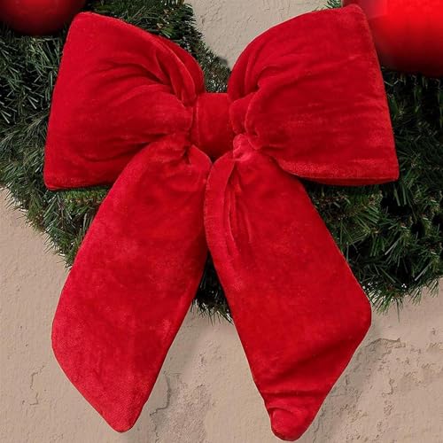 Fiocco di Natale in velluto ROSSO imbottito decorazione Puntale Albero di Natale fuori porta Coccarda Ghirlanda addobbo natalizio (30 cm)