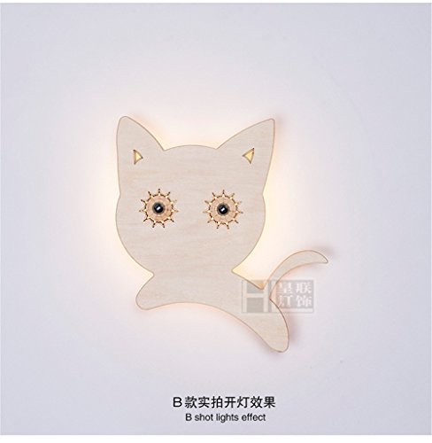 Fionadan appliques in legno camera da letto applique creative Fuochi lampada da parete a LED applique Bambini Mignon piccola Micia Mimi (25 cm)