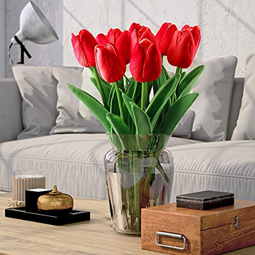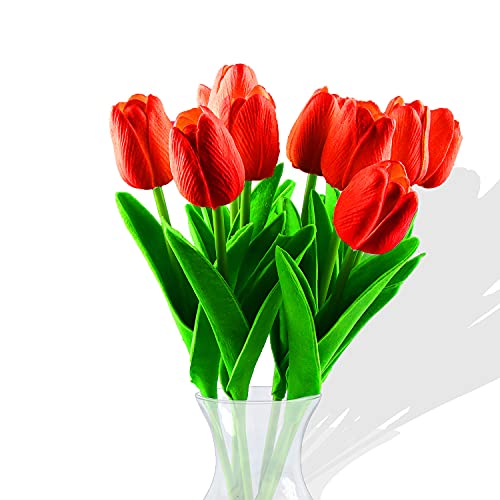 Fiore Artificiale Fiore Finto, Bouquet di Tulipani per la Decorazione Della Casa,Tulipano Materiale in Lattice Vero Matrimonio Stanza Famiglia Alberghi Festa DIY al operto Decorazione,10 Pezzib (red)