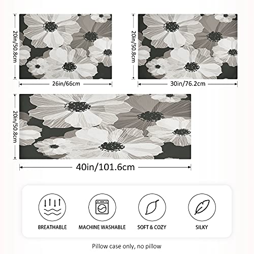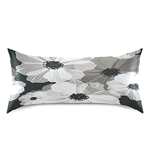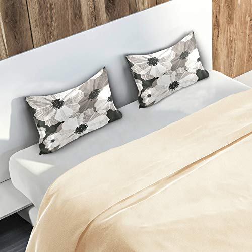 Arte Fiore Bianco Nero Federe Cuscino Letto, Federa Guanciale Pillowcase in Seta Morbida per Capelli e Pelle con Chiusura a Busta standard/regina/re