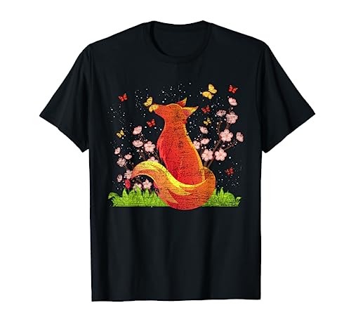 Fiore Di Ciliegio Sakura Amante Degli Animali Farfalla Volpe Maglietta